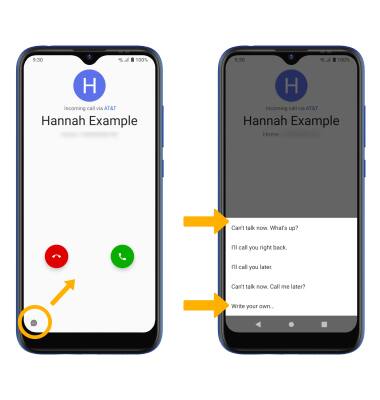 When receiving a call, select and drag the Message icon up to decline the call and send a text message. Select the desired text message to send, or select Write your own to write your own.
