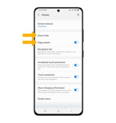 • EDGE SCREEN: Select Edge panels, then edit Edge screen settings as desired.