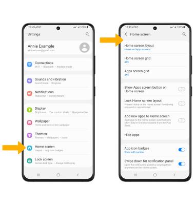 From the Settings screen, select Home screen to edit the Home screen grid, App screen grid, and more. Edit Home screen settings as desired.