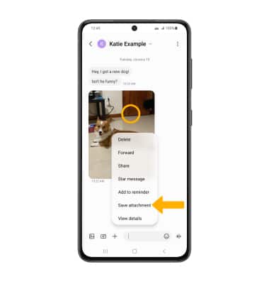 VIEW/SAVE AN ATTACHMENT: To view an attachment, select the desired attachment. To save an attachment, select and hold the desired attachment then select Save attachment.