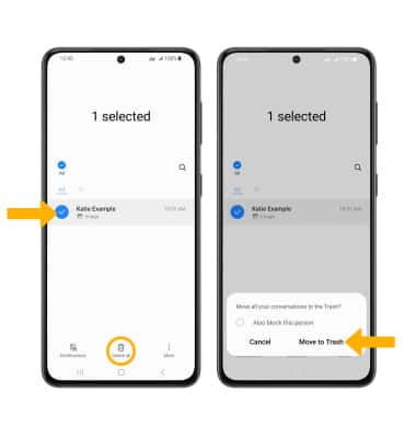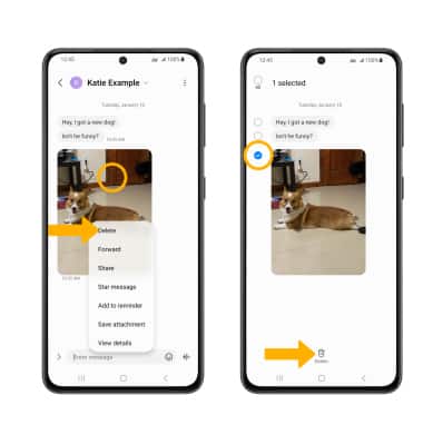 From the desired message thread, select and hold the desired message then select Delete. Select the desired message(s), then select the Delete icon.