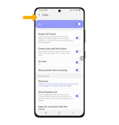 Note: S Pen is enabled by default. To enable or disable S Pen, from the S Pen screen, select the S Pen switch.
