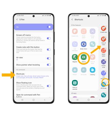 Settings icon > scroll to and select Advanced features > select S Pen.
