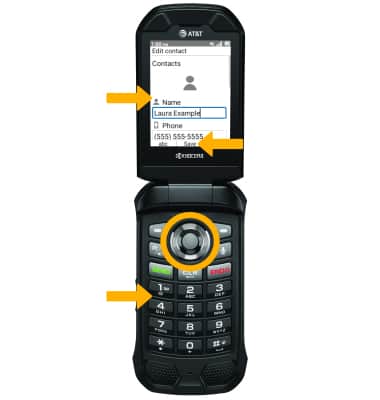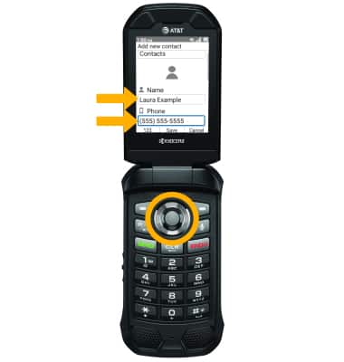 2. Use the keypad to enter the desired contact information in the corresponding fields.