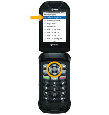 2. Press the up and down button to navigate to the desired ringtone, then press the Select button. Press the Select button to Save.