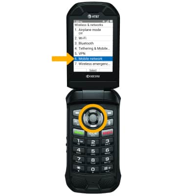 3. Press the down button to highlight Mobile network, then press the Select button.