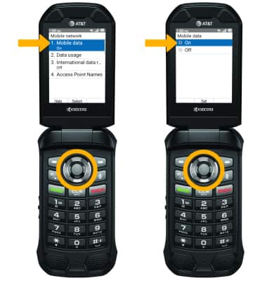 Press the Select button to select Mobile data. Press the up or down button to highlight the desired option, then press the Select button.