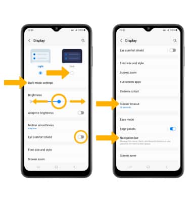 • EYE COMFORT SHIELD: Swipe left then select the Eye comfort shield icon. Eye comfort shield will use less blue light to be easier on your eyes. You can set a schedule for the Eye comfort shield in it's settings screen.