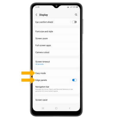 • EDGE SCREEN: Select Edge panels, then edit Edge screen settings as desired.