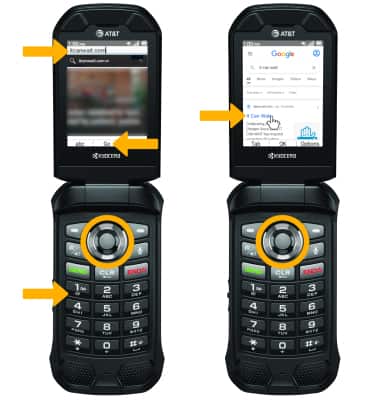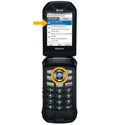 2. Use the keypad to enter the desired website, then press the Select button to select Go. Press the navigational buttons to highlight the desired website, then press the Select button to select.