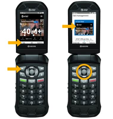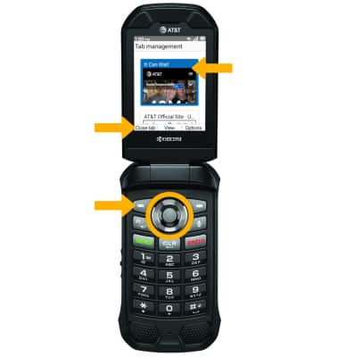 CLOSE A TAB: Press the up or down buttons to navigate to the desired tab, then press the left option button to select Close tab.