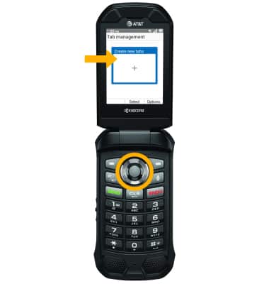 OPEN A NEW TAB: Press the down button to highlight Create new tabs, then press the Select button.