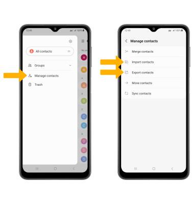 Menu icon > Manage contacts > Import or export contacts > follow the prompts.
