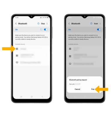 2. When Bluetooth is enabled, your device will automatically scan for devices. Select the desired device. Select Pair when prompted to request a pairing.