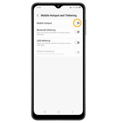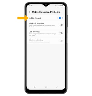 1. From the Mobile Hotspot and Tethering screen, select Mobile Hotspot.