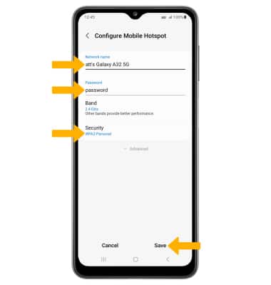 • SECURITY: Change the Security type of the Mobile Hotspot network.