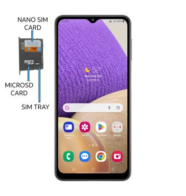 • Insert or remove the microSD card into the SIM tray with the gold contacts facing down and the notched edge on the lower right. Gently press the microSD card in until it clicks into place.