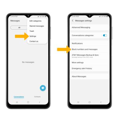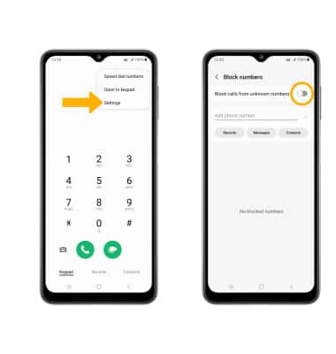 Menu icon then select Settings. Select Block numbers and spam.