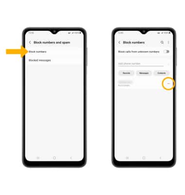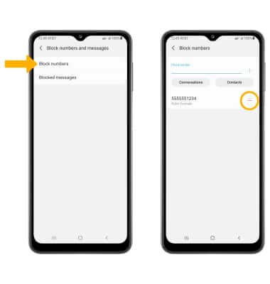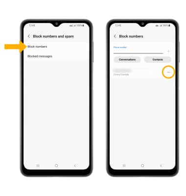 2. Select Block numbers. Select the Remove icon next to the desired number to unblock.