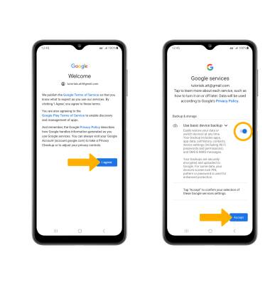 4. Select I agree. Review the Google Services Privacy Policy, then select the Use basic device backup switch. Select Accept when finished.