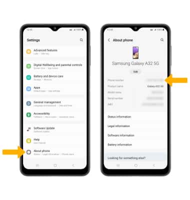 2. Scroll to and select About phone. The device's Phone number will be displayed.