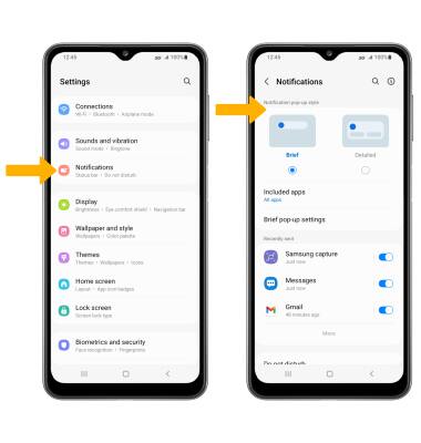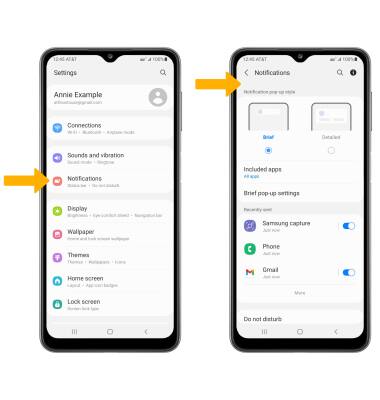 To block or unblock notifications from appearing when the device is locked, from the Notifications screen, select Lock screen notifications, then select the Notifications switch.