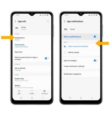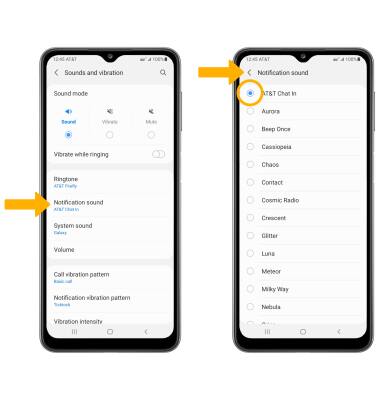 2. Select Notification sound. Select the desired notification sound, then select the back arrow.