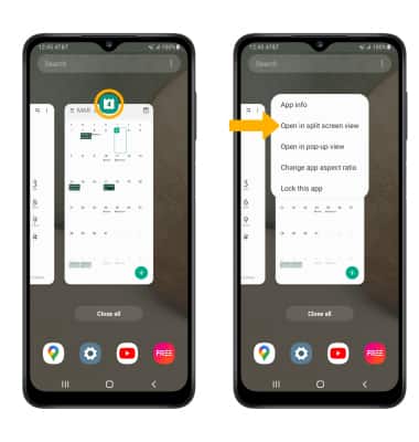 2. Select the desired app icon, then select Open in split screen view.