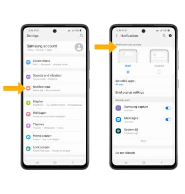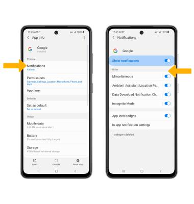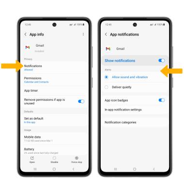 To block or unblock notifications from appearing when the device is locked, from the Notifications screen, select Lock screen notifications, then select the Notifications switch.