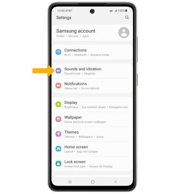 1. From the Settings screen, select Sounds and vibration.