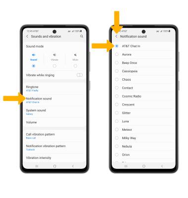 2. Select Notification sound. Select the desired notification sound, then select the back arrow.