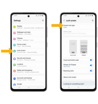 2. Scroll to and select Lock screen, then select Screen lock type.