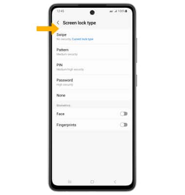3. Select the desired screen lock type and follow the prompts to complete set up.
