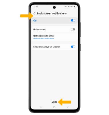 4. Edit Lock screen notification settings as desired, then select Done.