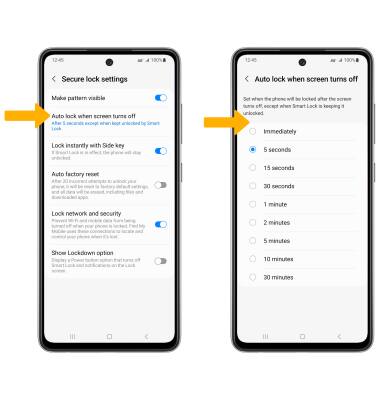 2. Select Auto lock when screen turns off, then select the desired timer duration.