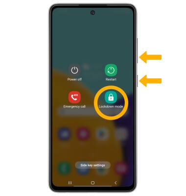 ACCESS: Press and hold the Side and Volume down buttons, then select Lockdown mode.