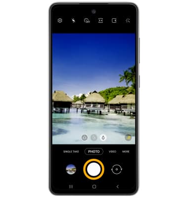 Single Take allows you to shoot a scene in a series of pictures and short videos at the same time. From the camera screen, swipe left to MORE then select SINGLE TAKE. Select the Capture icon to begin recording. Pan the camera around slowly to capture multiple photos in the scene. Single Take will stop automatically after about 10 seconds. To manually stop recording, select the Stop icon. Your device will automatically process all the photos and videos captured.