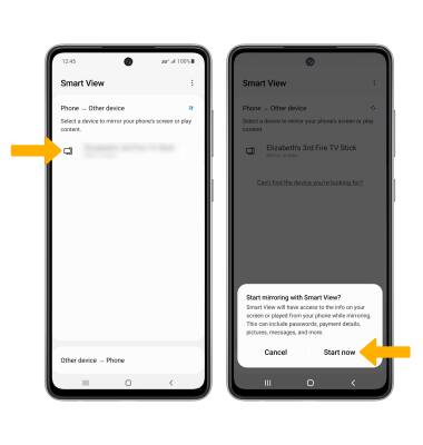 Note: Alternately, you can turn off Screen projecting through Quick Settings. Swipe down from the Notification bar with two fingers > swipe left > select Smart View. The device will disconnect.