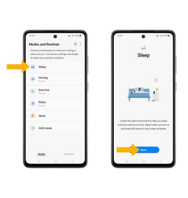 1. From the Modes and Routines screen, select Sleep, then select Start.