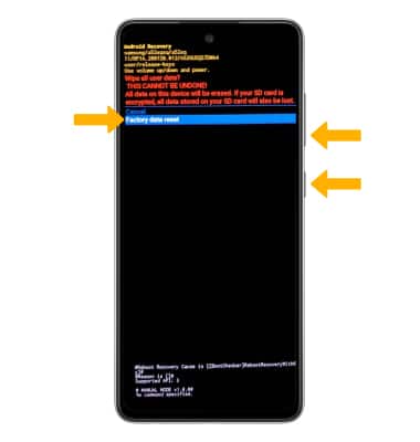 3. Press the Volume down button until Factory data reset is highlighted, then press the Side button to begin the reset process.
