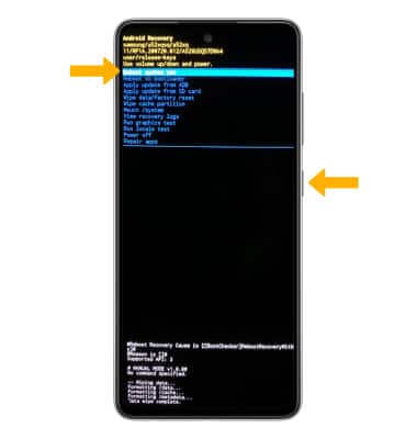 4. When the Android Recovery screen displays again, ensure that Reboot system now is highlighted then press the Side button.