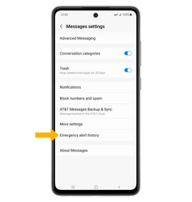 1. From the Message settings screen, select Emergency alert history.