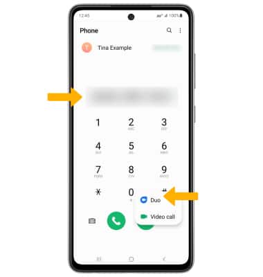 Note: The Video Call icon appears if the person has the capability to receive a Video Call and is crossed out if the person does not have the capability to receive a Video Call. You have the option to use either Duo or Video call, for this demonstration, Video call will be selected.