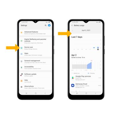 2. Scroll to and select Battery and device care > Battery > battery usage information will be displayed.