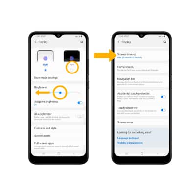 • DECREASE SCREEN TIMEOUT: Scroll to and select Screen timeout, then select the desired option.