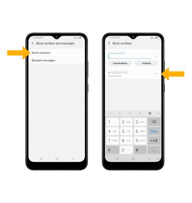 2. Select Block numbers. Select the Remove icon next to the desired number to unblock.