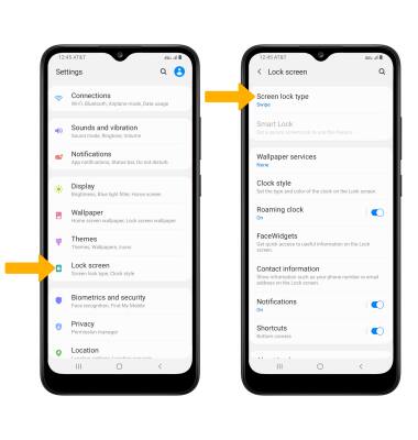 From the Lock screen screen, select Screen lock type > enter your current screen lock > select the new desired screen lock type and follow prompts to complete set up.