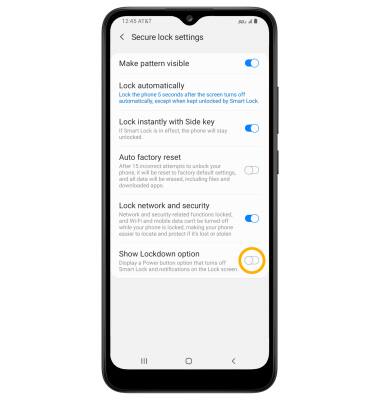 ENABLE: Lockdown mode turns off Smart Lock, biometrics unlock and notifications on the Lock screen. From the Secure lock settings screen, select the Show Lockdown option switch.