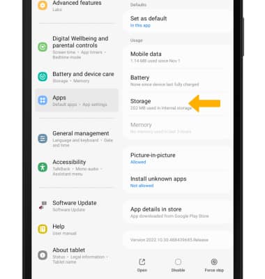 1. From the Settings screen, scroll to and select Apps then select the desired app.