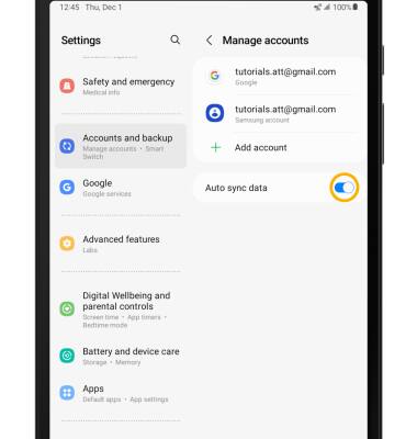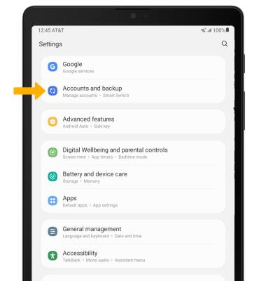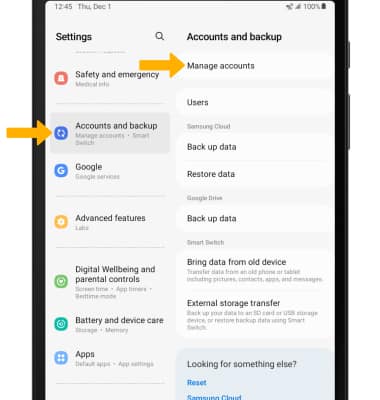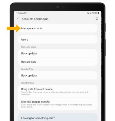 1. From the Settings screen, scroll to and select Accounts and backup > Manage accounts.